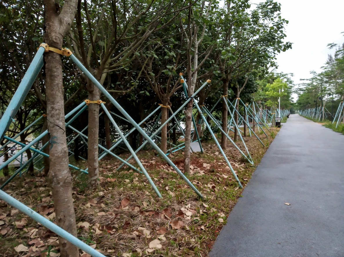 Tego wieczoru poszliśmy na spacer. Widzieliśmy drzewa podparte metalowymi rurkami, aby podczas dużego wiatru (monsunu) – co zdarza się nierzadko podczas pory deszczowej, czyli od maja do października (w trakcie naszego pobytu) – się nie połamały.