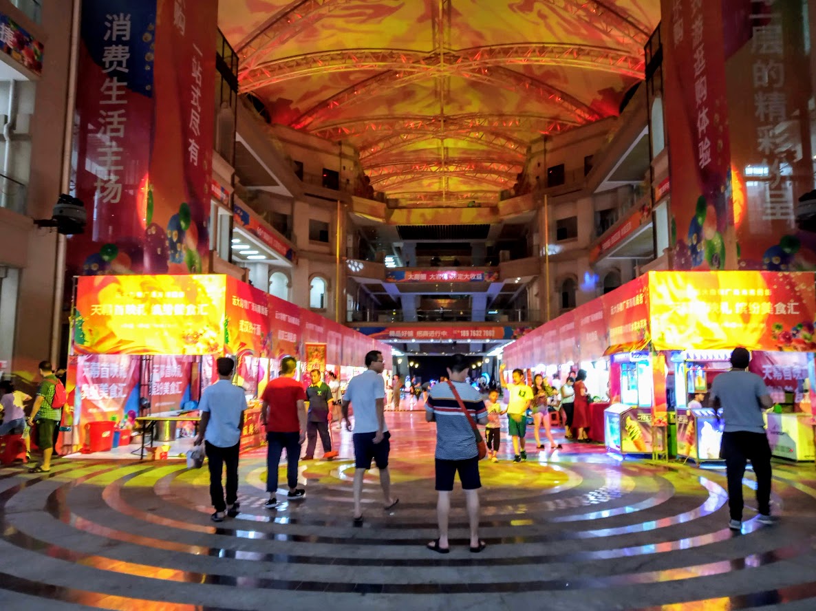 Długo chodziliśmy tego pierwszego dnia po mieście, szukając cywilizacji. W końcu, naszym oczom ukazał się widok niespodziewany. Zobaczyliśmy wielkie centrum handlowe, z ogromnym zewnętrznym holem (zakrytym przed deszczem sporym dachem). Były tam straganiki z owocami, warzywami, przyprawami i wszelkimi możliwymi duperelami. Poza tym mini tor samochodowy dla dzieci, gdzie rodzice bawili się równie dobrze, jak ich pociechy. Wszystko świecące, lukrowe, grające, migające, fluorescencyjne i szalone.