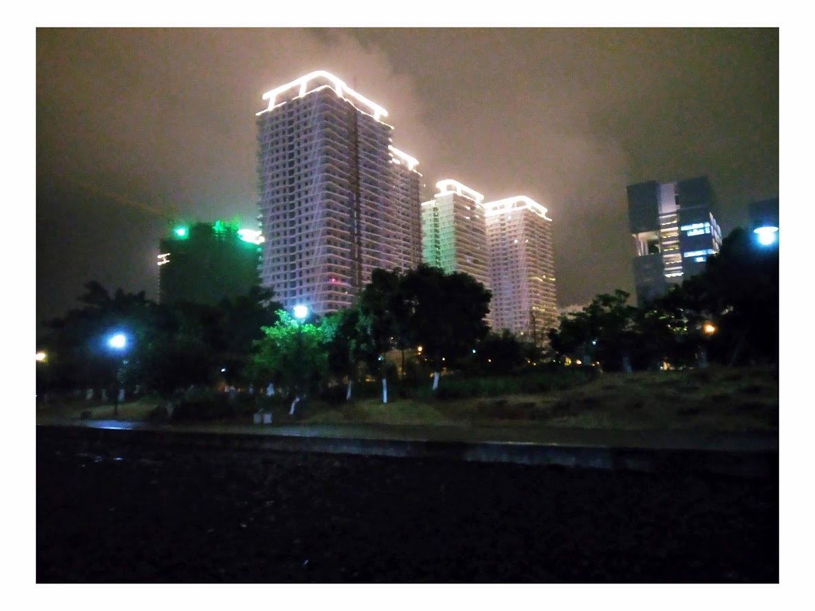 Stamtąd ruszyliśmy w stronę budynków, które widzieliśmy z balkonu. Wydawało nam się, że miasto będzie tętniło życiem. Jednak, gdy doszliśmy na miejsce i krążyliśmy między ok. 30 piętrowymi blokami, odnieśliśmy wrażenie, jakby nikt w nich nie mieszkał. Tylko w bardzo nielicznych oknach świeciło się światło, a było koło godz. 20. Na ulicach byliśmy niemalże sami. Od czasu do czasu przejechał tylko jakiś skuter, czy samochód. Wymarłe miasto. Nie mogliśmy zrozumieć po, co wybudowano tak wiele ogromnych budynków, skoro prawie nikt ich nie zamieszkuje.