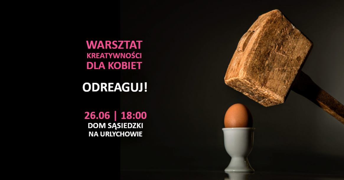 26.06, zapraszam na godz. 18:00 do Domu Sąsiedzkiego na Urlychowie, na bezpłatny warsztat kreatywny, pt. “Odreaguj!” dla kobiet 18+, który odbędzie się w ramach cyklu Ambasada Kobiet.