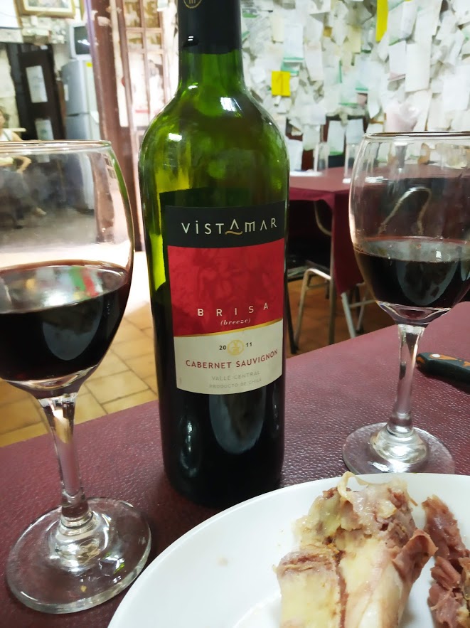 Cóż za radość – nawiązanie do Polski. Uczciliśmy więc decyzję o pozostaniu w Santiago tą właśnie prostą, acz sentymentalną potrawą. Do tego wyśmienite chilijskie winko – rocznik 2011.