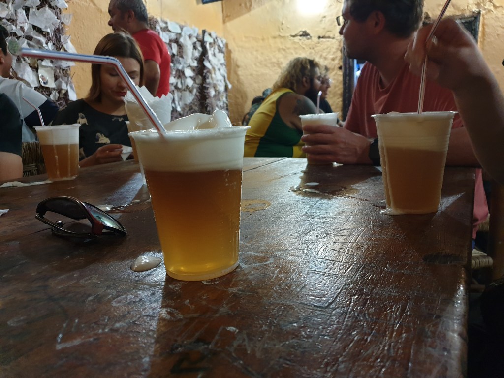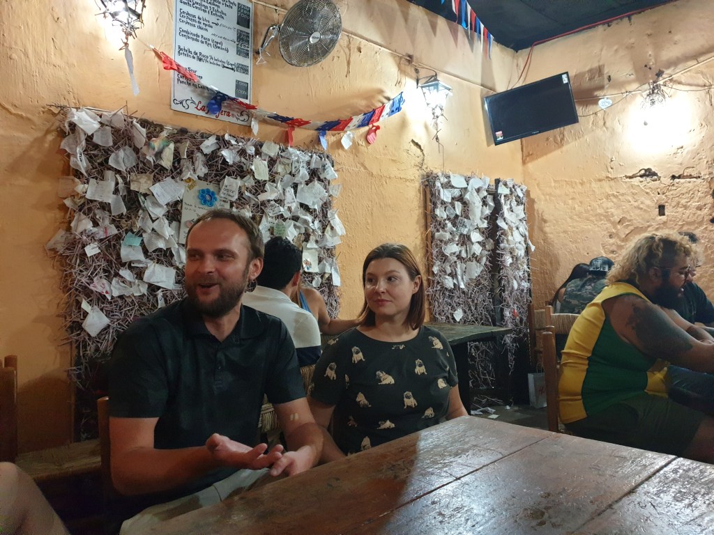 Obawy się nie spełniły. Wręcz przeciwnie. La Piojera to istna petarda, eksplozja chilijskiego klimatu. Emocje, krzyki, śpiew i prawdziwy barowy zgiełk. Lepiące się od alkoholu stoliki – podkreślające speluniasty klimat miejsca – nie przeszkadzają. Dla mnie one raczej ociekają niepowtarzalnym klimatem. Walające się wszędzie papierowe serwetki to nie bałagan, to środek komunikacji – wymiany myśli, wrażeń, bolączek i marzeń, które każdy – odwiedzający ten bar – może przelać na papier i wpleść w ściany, przyjmujące – jak najlepszy ziomek – twoje radości i żale.